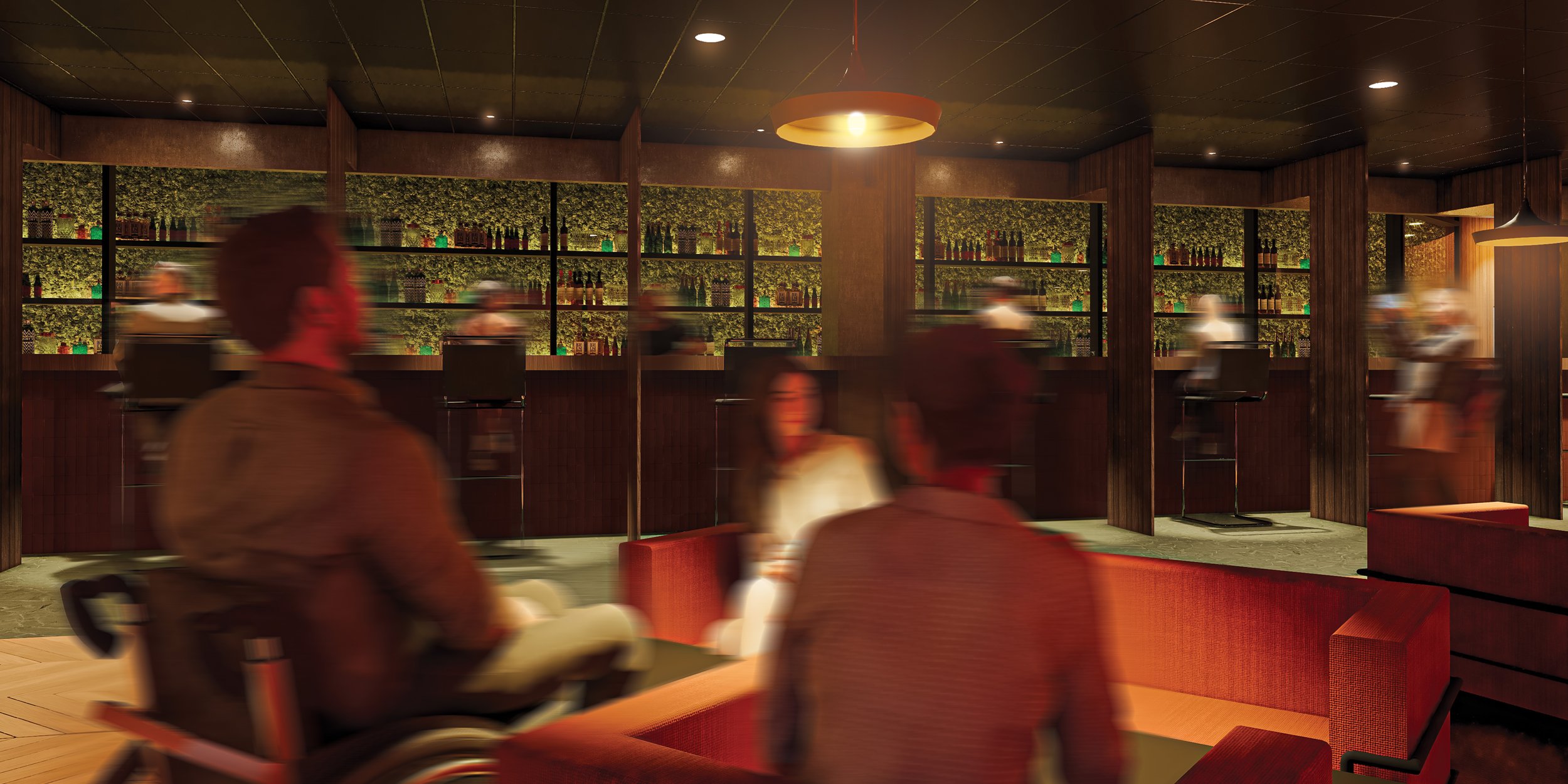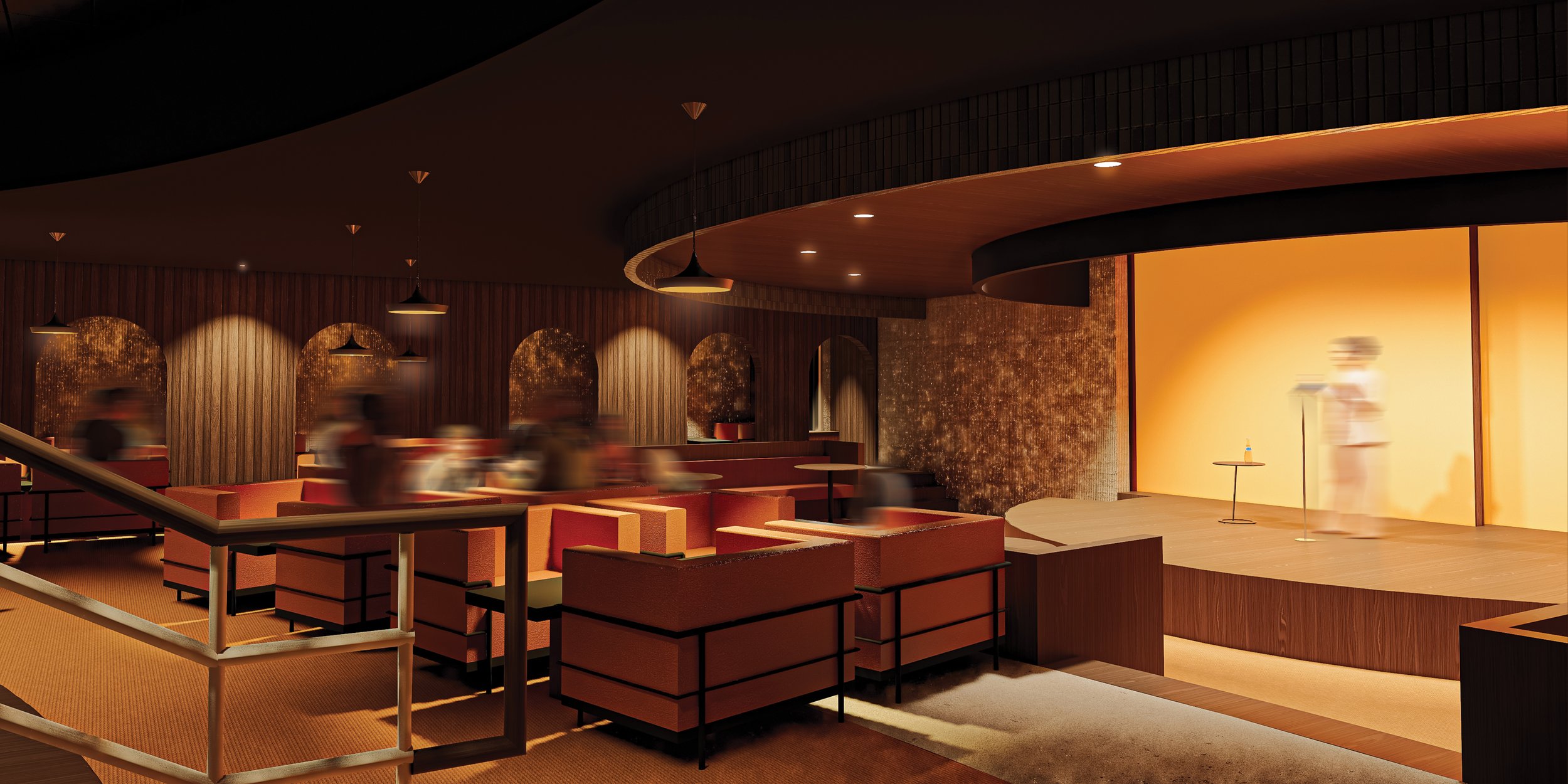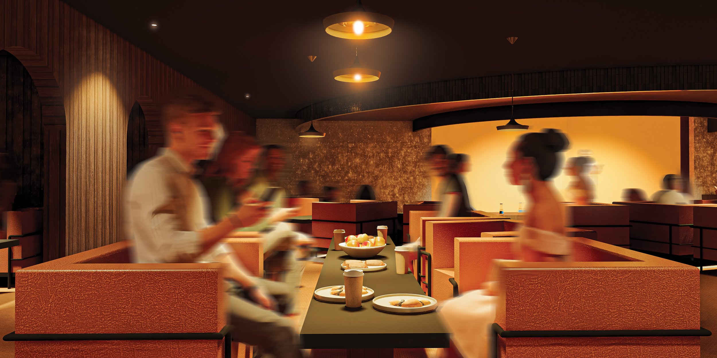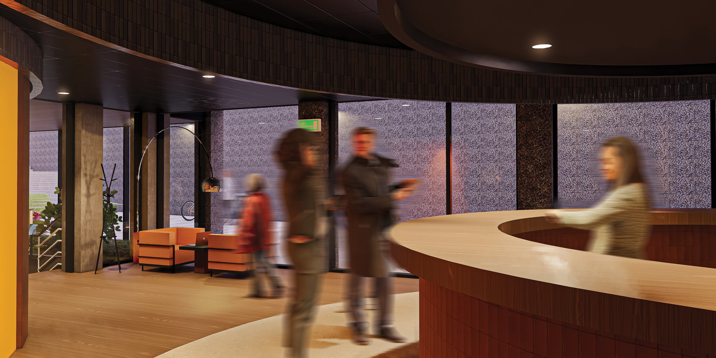 Drawing inspiration from the ritual of camping, Escape It reimagines the hospitality lounge as a convergence of hearth, forest, bar, and theatre. Grounded in proxemic theory, the project investigates how spatial proximity shapes the atmosphere of social gatherings, particularly around an indoor fireplace. Seating is arranged to balance intimate, personal, and social distances, using timber-clad benches, moss-textured upholsteries, and soft, dappled lighting to define distinct zones.