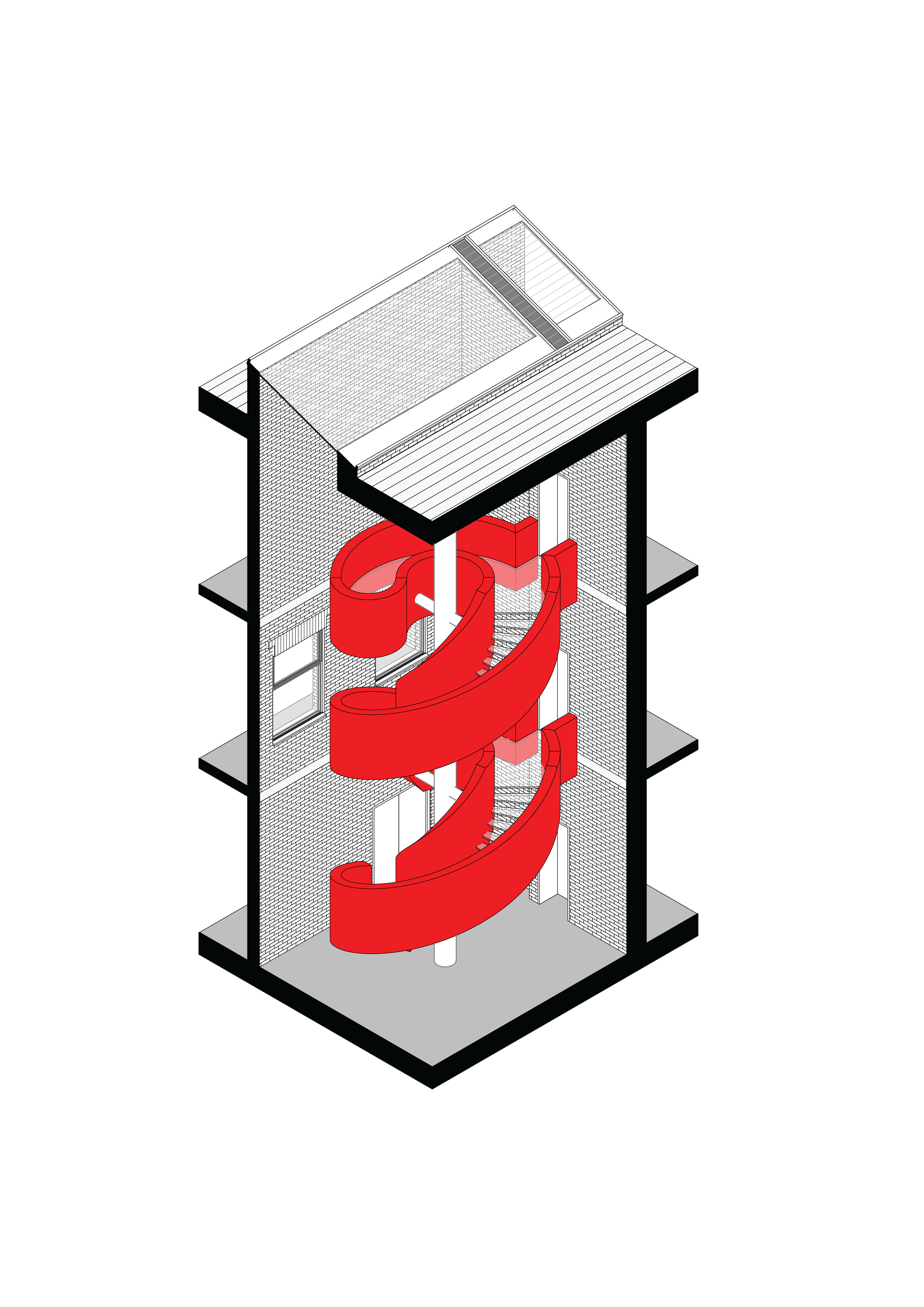 This renovation transforms a functional stairwell into a thoughtfully designed passage that mirrors the patient’s journey through a hospital, an experience defined by moments of anticipation, uncertainty, and eventual relief. Rather than treating the staircase as mere infrastructure, the design embraces its role as a transition space, a “liminal zone” where subconscious perceptions of materiality, light, and form profoundly shape emotional well-being.
