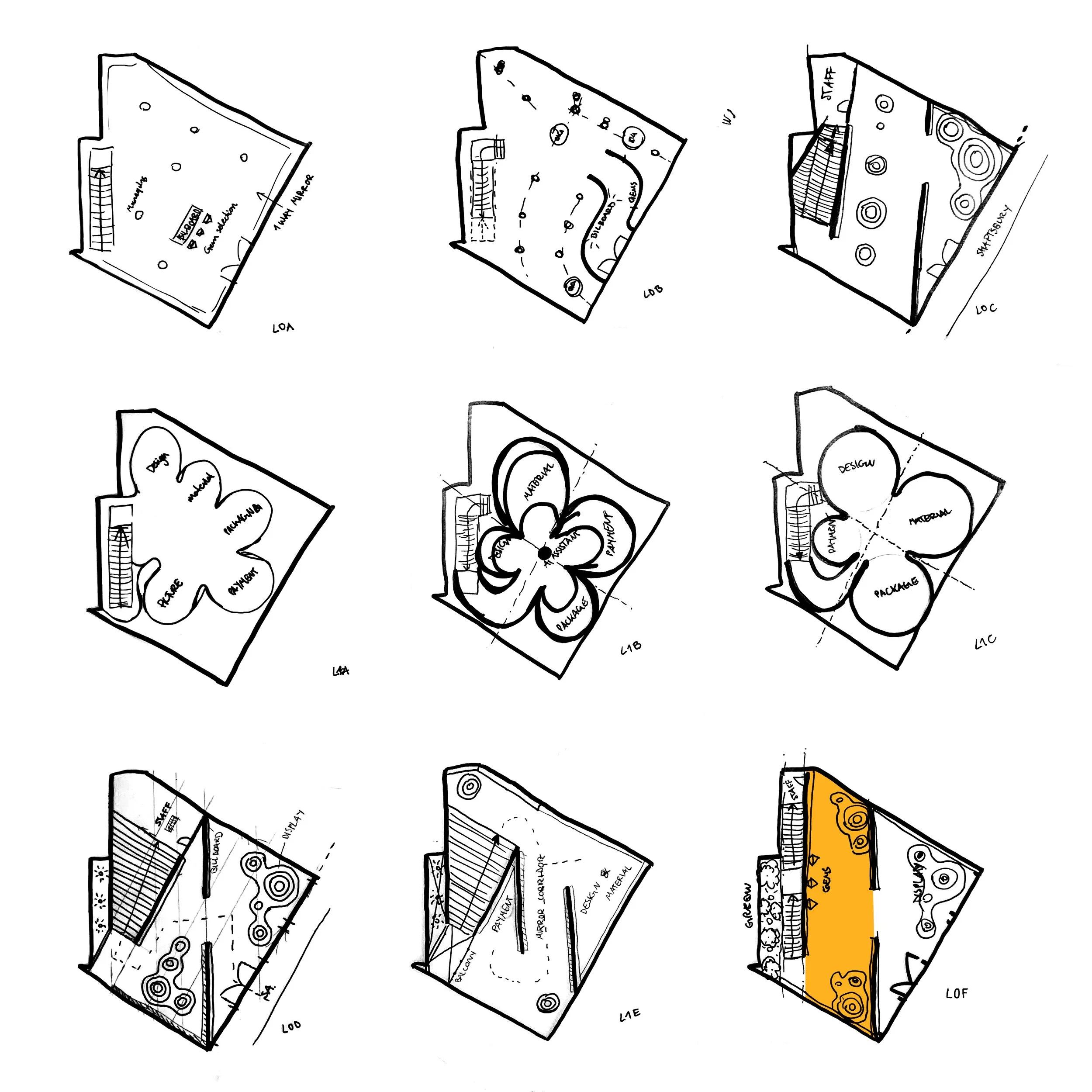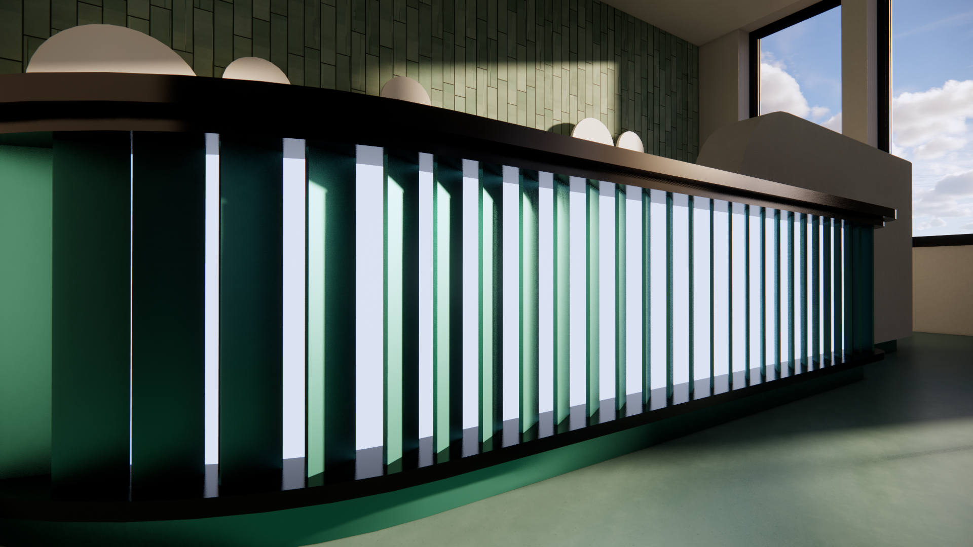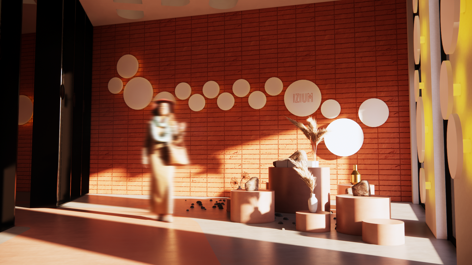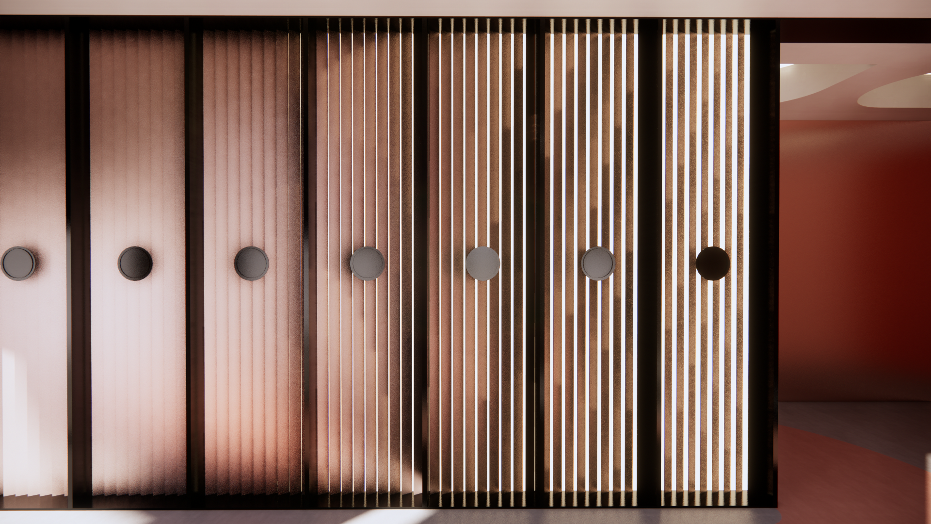 The motion wall evolved into a shutter-like system, inspired by a window I often found myself gazing through while seeking ideas for the project. Through multiple iterations, the concept was refined, ultimately becoming a key element that animates the space and defines the store’s narrative.